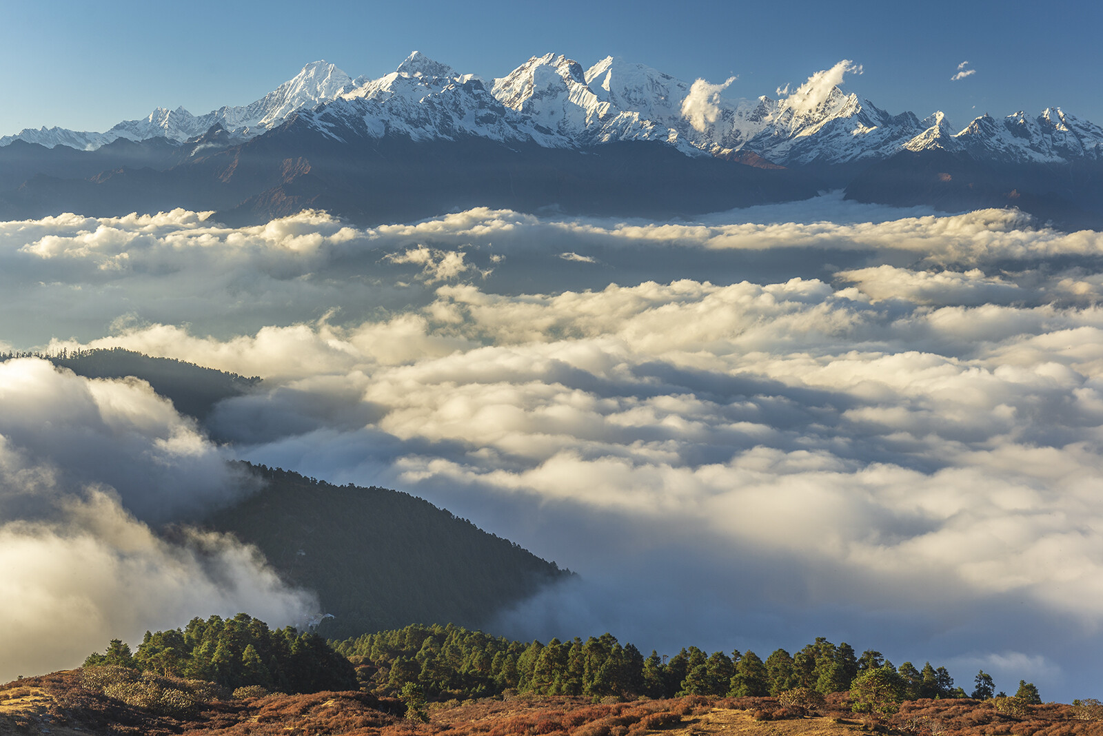 Лантанг - укромная часть Непала, примыкающая к Тибету, является одним из красивейших национальных природных парков во всех Гималаях. Трекинг тут начинается в субтропических джунглях с эвкалиптами и бамбуковыми зарослями, проходит через зону хвойных лесов, выходит в зону горных пастбищ, где пасутся яки и доходит до ледников. Тропа идет вдоль водопадов и красивой реки Лантанг. Над пейзажем величественно возвышается гора Лантанг Лирунг (7 227 м). В бамбуковых зарослях у нас будет шанс увидеть рыжую панду. Тут нет толп туристов, а инфраструктура треккинга отличается новизной и достаточно высоким уровнем сервиса. В большинстве лоджий есть горячий душ. Мы совершим 2 несложных трекинговых восхождения: на Кьянгжин Ри (4 773 м) и на Церго Ри (4 984 м).