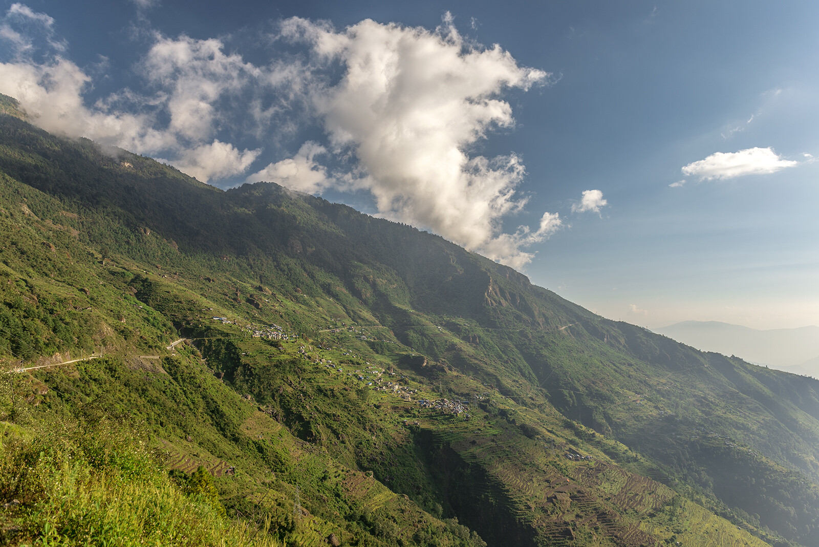 Дорога идет по живописному ущелью священной реки Тришули, по единственной автомобильной дороге, связывающей современный Непал и Тибет. Обед в дороге.