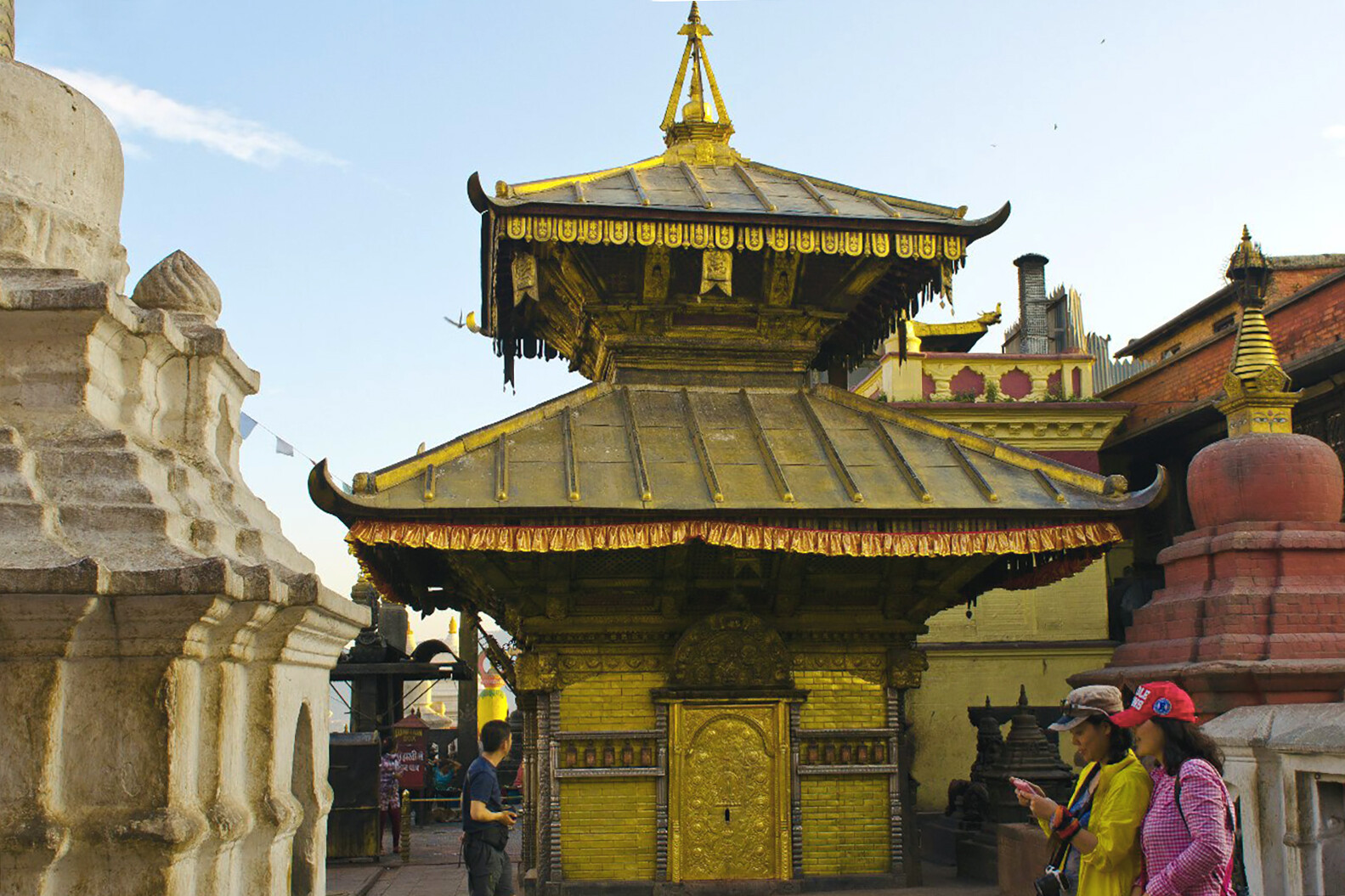 Встреча рассвета на холме Манджушри – самом высоком месте долины Катманду с видом на всю столицу Непала. Здесь наверху холма, куда ведут 365 крутых ступенек в незапамятные времена появилась сама собой ступа Сваямбунатх. Медитация на рассветное солнце. Легкая разминочная практика йоги. Масала-чай. Посещаем утренние пуджи во всех индуистских и буддистских храмах на вершине холма.